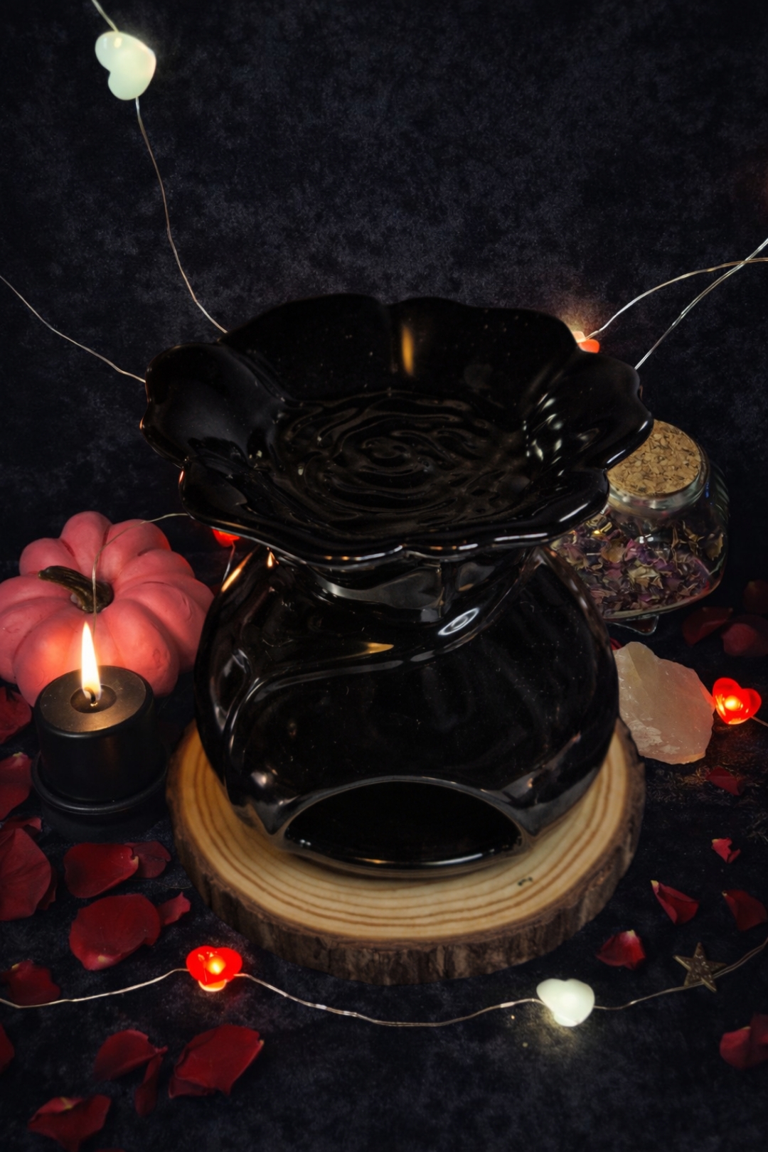 Découvrez la nouvelle collection st valloween avec ce magnifique brûle parfum en forme de rose noir, le dessus anime vos fondants en prenant la forme de la rose.